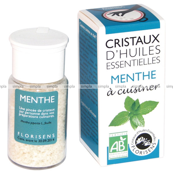 Эфирное масло мяты перечной в кристаллах широко используется в кулинарии. Продукт добавляют в соусы к бараньему мясу, для улучшения вкуса и аромата смешанных напитков из томатного сока и в различные фруктовые и овощные салаты. Кристаллы масла улучшают вкус жаркого, жареной ягнятины, баранины и цыплят. Масло добавляется к тушёной капусте, моркови, гороху или луку-порею.